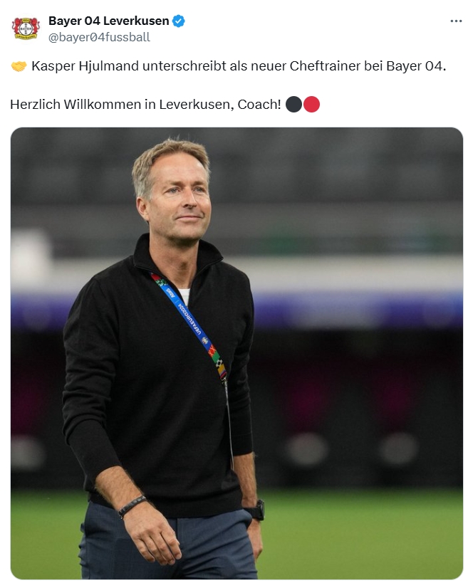 Chúng tôi vui mừng thông báo rằng Casper Yulmander đã trở thành huấn luyện viên trưởng mới của Leverkusen! Huấn luyện viên Đan Mạch 53 tuổi đã ký hợp đồng với chúng tôi cho đến ngày 30 tháng 6 năm 2027. Chào mừng được huấn luyện viên mới của chúng tôi!